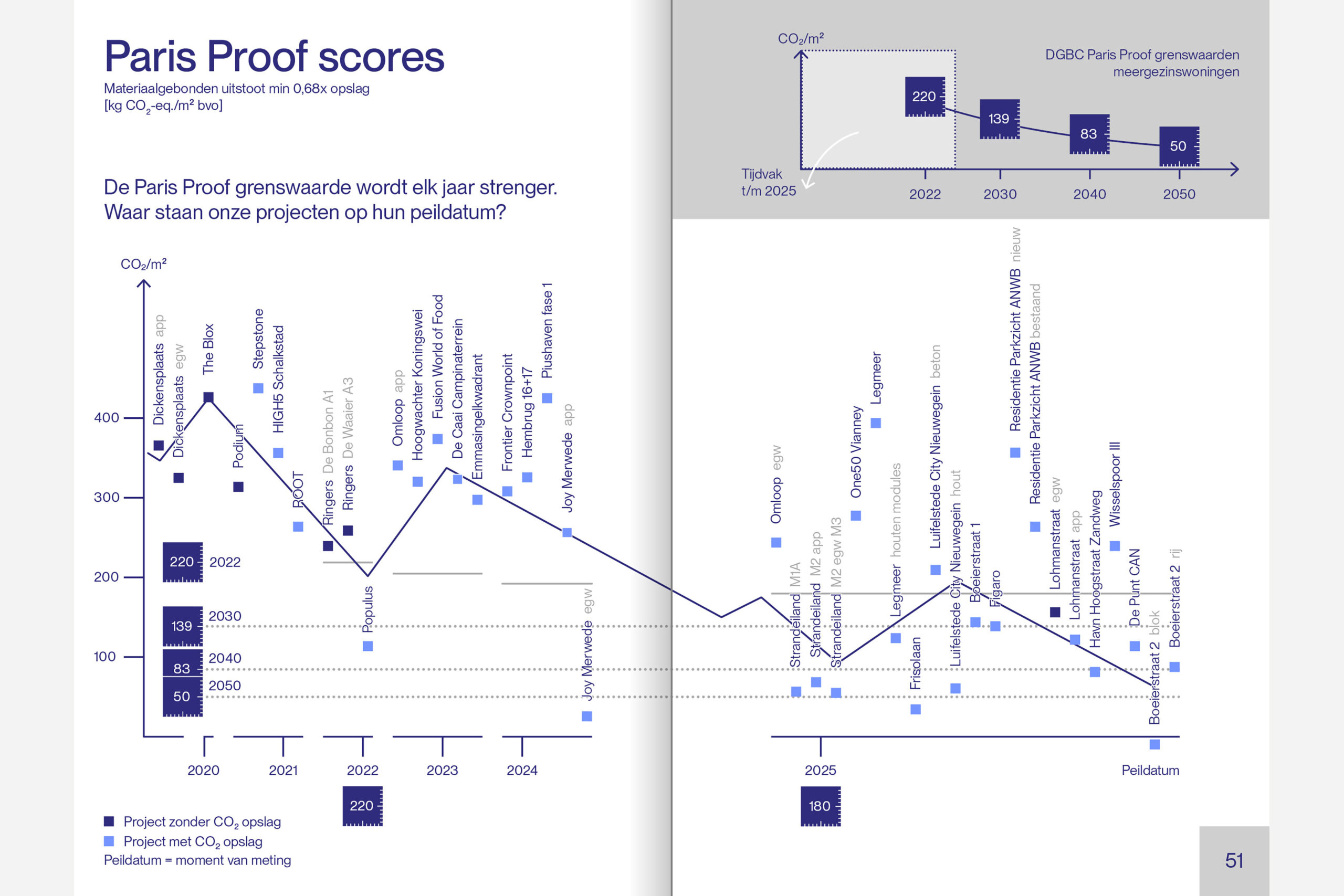 In onze eerste duurzaamheidsrapportage analyseren we de CO₂-prestaties van projecten uit de afgelopen vijf jaar en toetsen we ze aan onze commitments: MRA Houtbouw Pact, Paris Proof, Toekomstbestendig Bouwen en Biobased Bouwen. Sommige projecten zijn inmiddels opgeleverd, andere pas net opgestart. De dalende lijn is ingezet, twee derde van de projecten voldoet op hun peildatum in de rapportage aan de Paris Proof grenswaarden. En in de MRA is 83% van onze projecten in ontwikkeling houtbouw. Door open te zijn over wat lukt en wat niet, dragen we bij aan een breder gesprek over duurzaam ontwerpen.