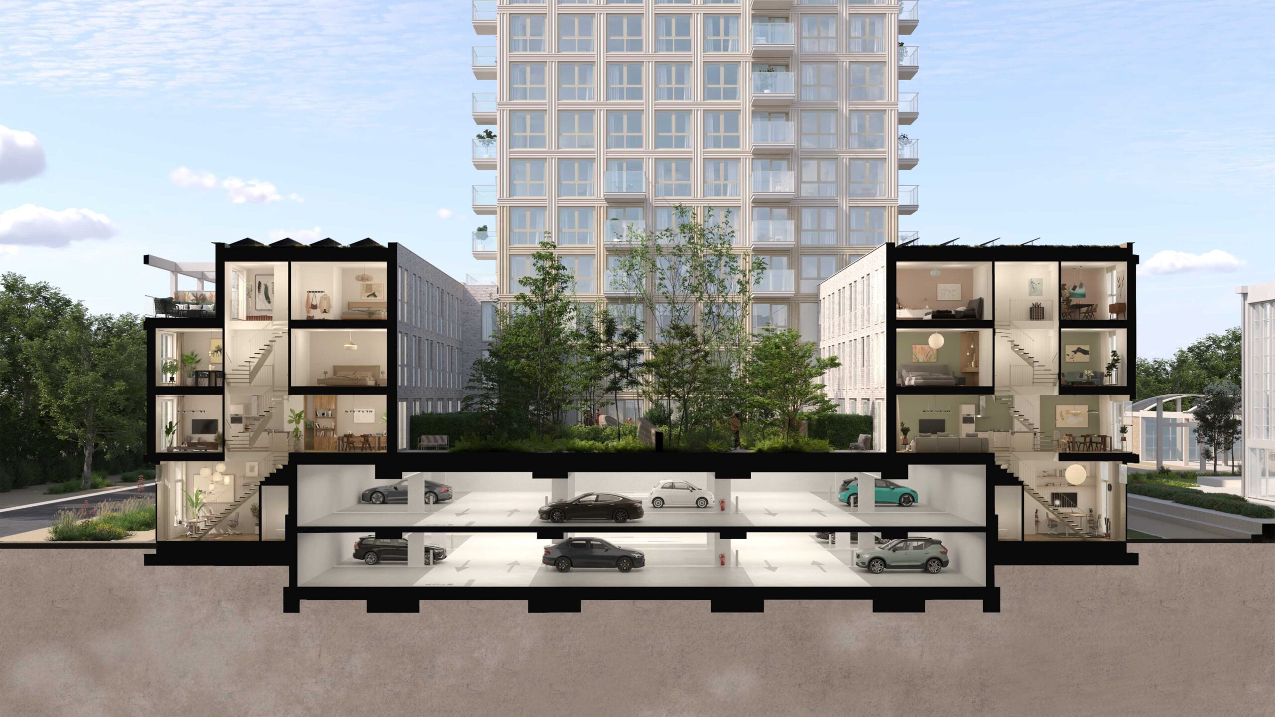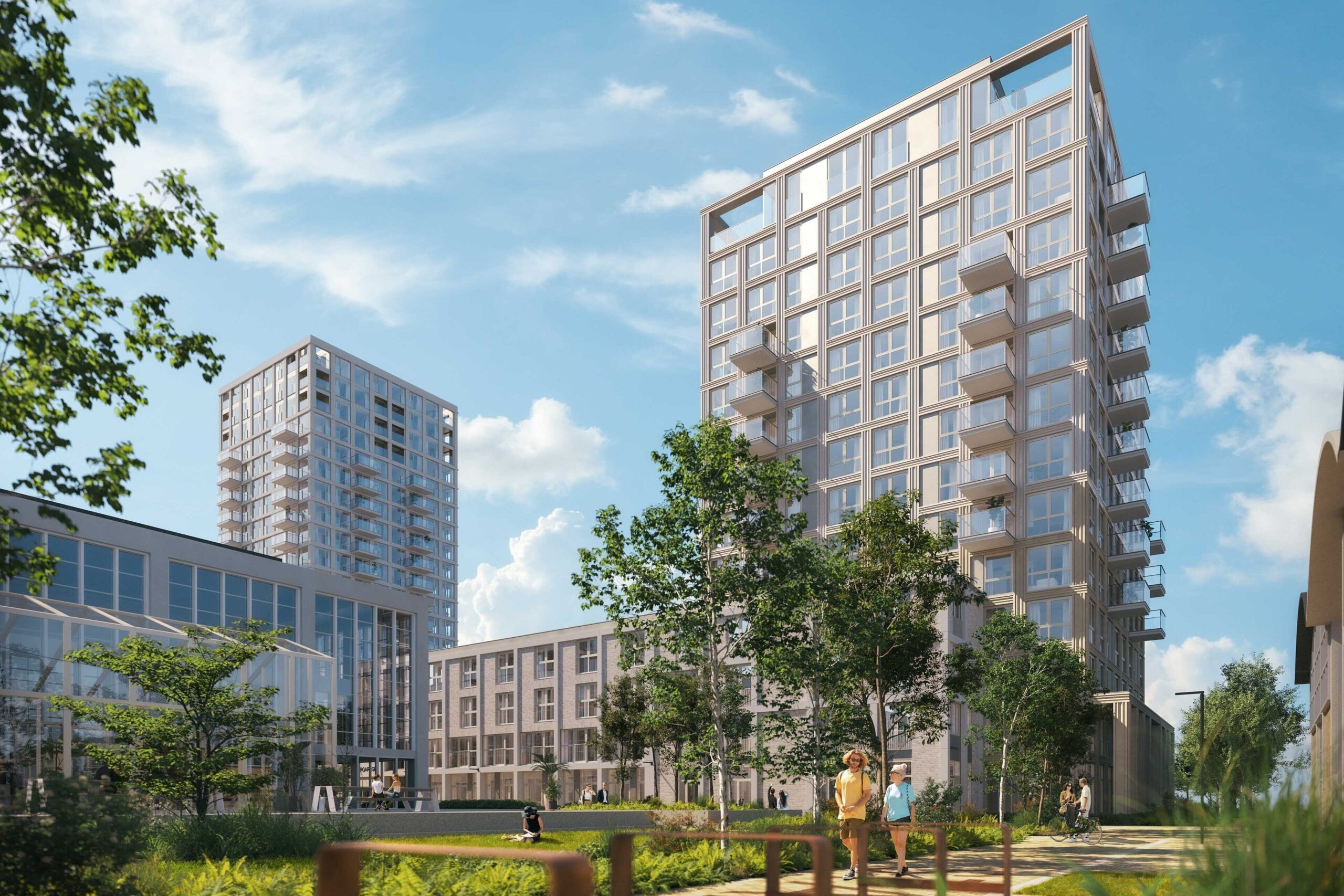 In our subarea, we are realising a complex programme of social and free sector rental, owner-occupied, live/work and care homes and underground parking. With great attention to the transition zone from public to private at ground level and characterful materialisation. The three other residential towers are designed by KAAN Architects, Mei architects and planners (together phase 1, construction of which has just started) and Studioninedots.