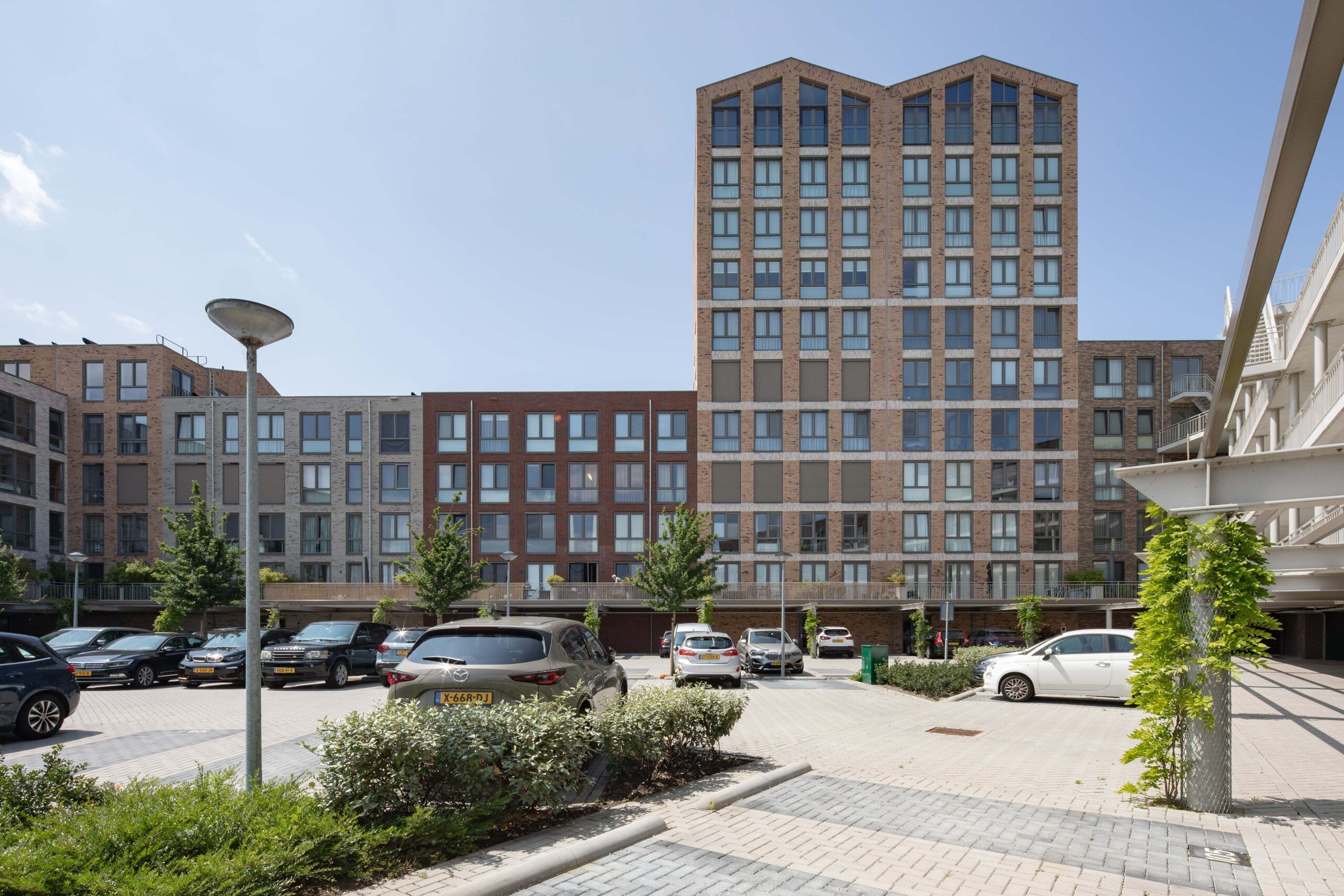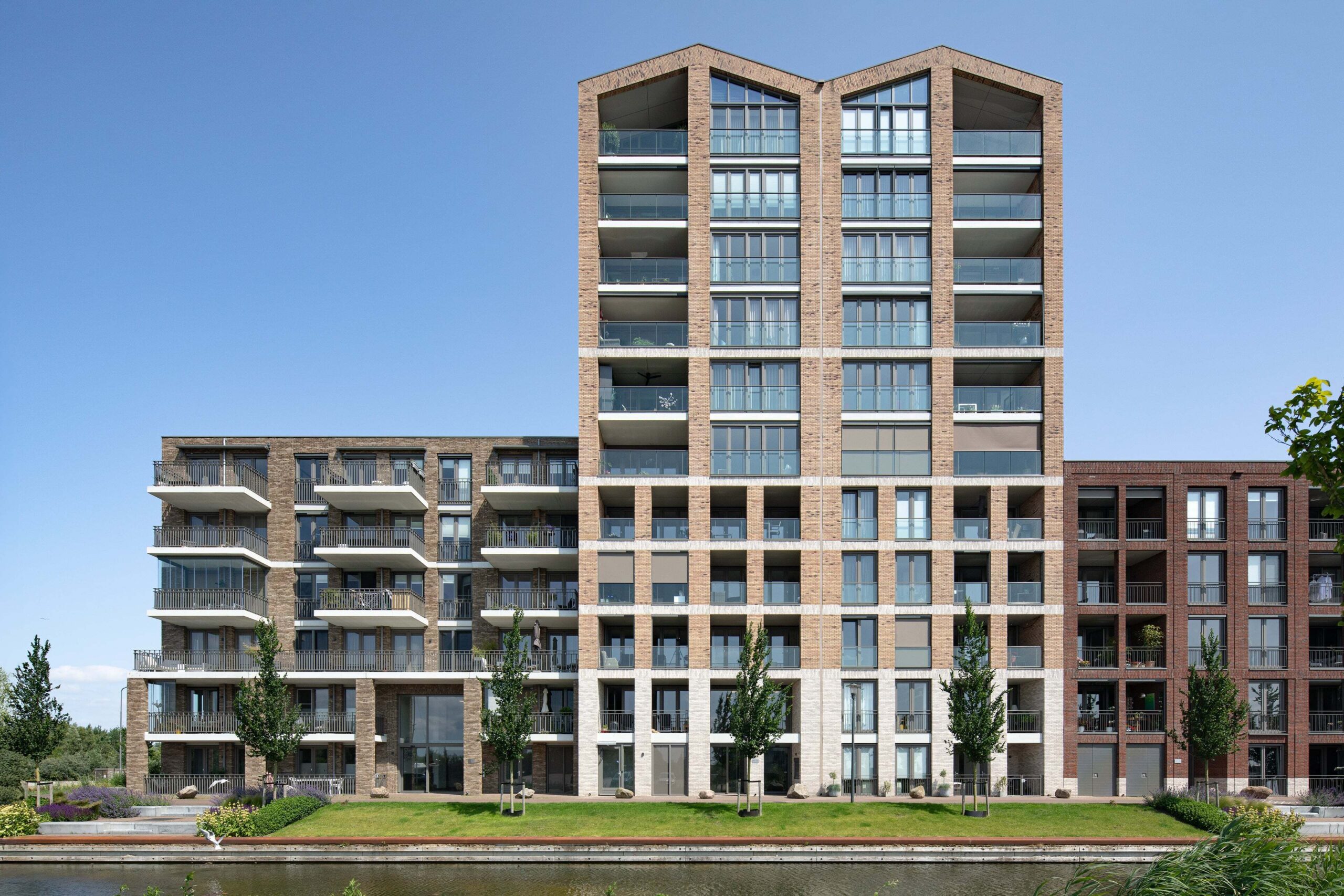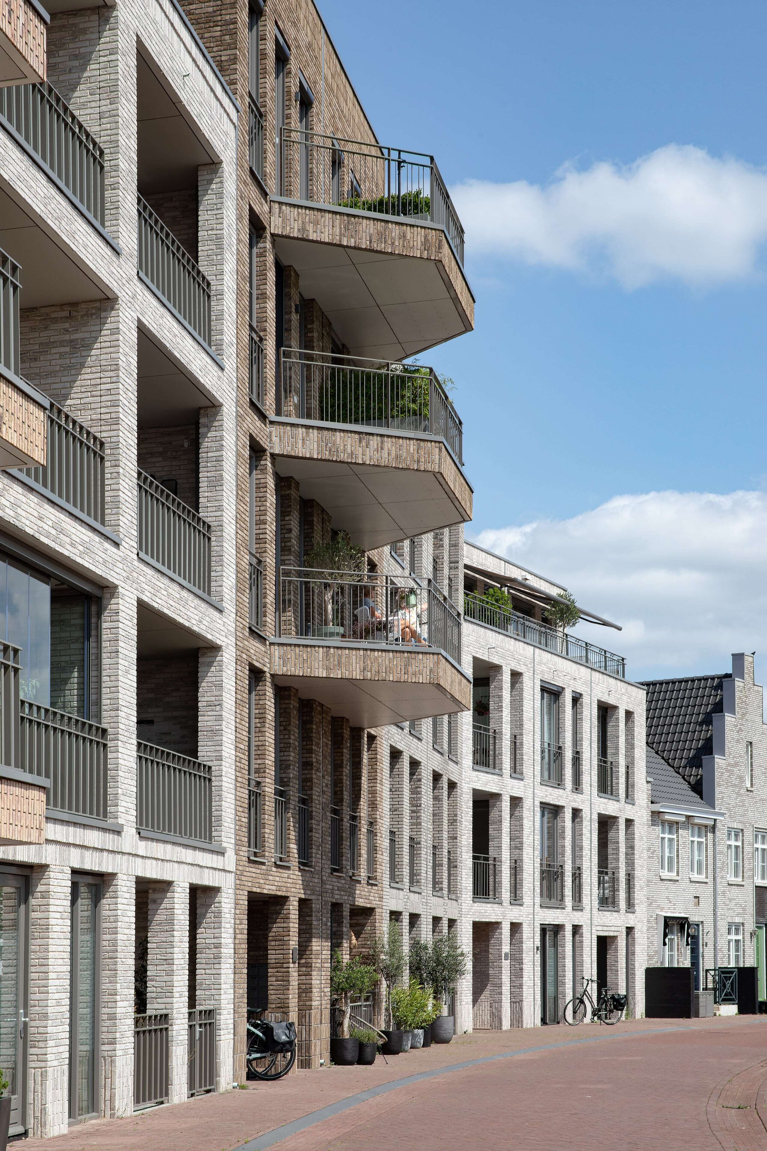 Harderwijk’s new waterfont consists of twelve buildings, seven of which are along the water. These buildings have their own internal access, and each has its own entrance from the street. They vary in height and thus connect to the low houses along the Singel. This transition from ground-level homes to the port front is gradually being increased in scale, size and color. This creates a natural structure towards the prominent head on the boulevard. The grain grows from single family houses to larger buildings with the eleven-storey double house as the real Kop van de Bakens.