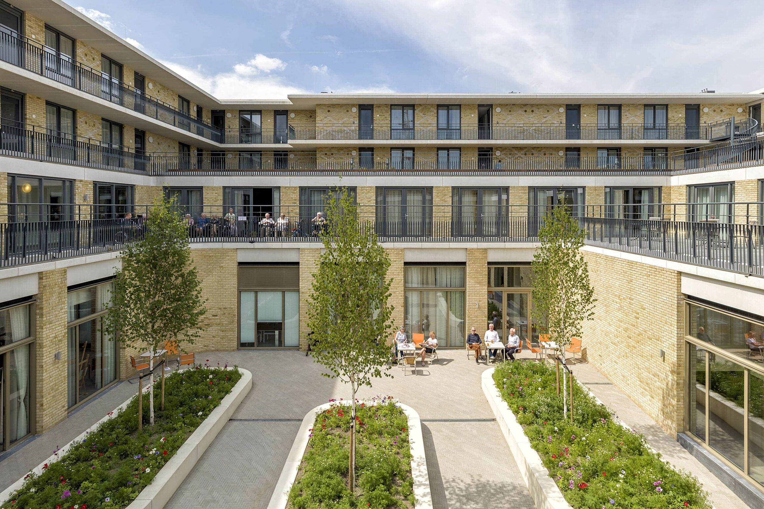 In 1998 ontwierpen we Archipel in Almere, dat het eerste woonzorgcentrum werd dat de starre eisen van de toenmalige AWBZ negeerde. In Archipel wordt zorg van wieg tot graf geleverd: van het gezondheidscentrum met zijn consultatiebureau tot zelfstandige huurwoningen, zorgwoningen voor somatische patiënten en groepswoningen voor dementerende ouderen. En dat midden in de samenleving, naast ‘gewone’ woningen en met uitzicht op het schoolplein. De zorgwoningen hebben hun voordeur aan het beschermde hof, wat destijds een noviteit was. Een stevig gevecht met de AWBZ was daarvoor nodig: zij verlangden immers binnengangen waar het verplegend personeel met etenskarren en bedden doorheen kon lopen en de ‘patiënten’ droog naar therapie liepen. Hoe anders is Archipel, waar je inderdaad ‘normaal’ naar buiten moet en regen en wind of zon kan ervaren. Waar de verzorgers juist buitenom moeten en ook de arts moet aanbellen bij de voordeur en wachten tot er opengedaan wordt. Hier worden door de bewoners de aardappels zelf geschild en de was kan desnoods wel tien keer per dag opgevouwen worden. Het huishouden is voor veel bewoners nog de laatste strohalm van herkenning.