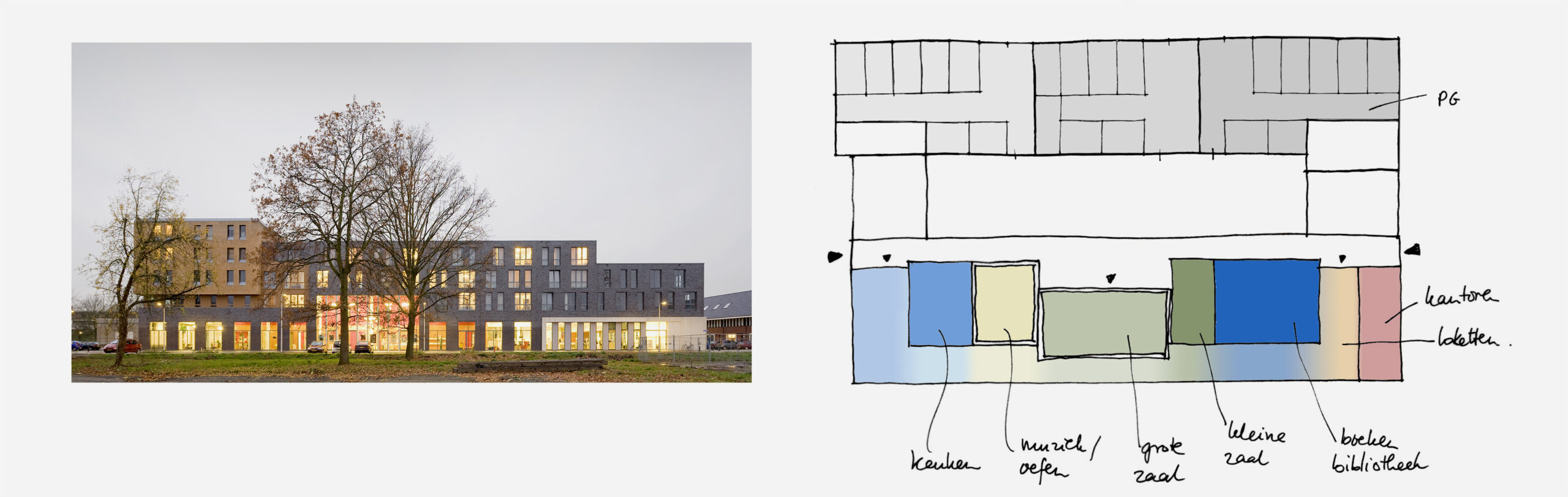 Een groep bevlogen verpleeghuisartsen was vastbesloten los te komen van de toen geldende wurggreep van verplichte ‘AWBZ-normen’, die van een verpleeghuis een ziekenhuis maakten. De verpleeghuisartsen van Zorggroep Almere wilden in hun nieuwe projecten van groot- naar kleinschalige zorg transformeren, met het accent op wonen met zorg, in plaats van zorg met wonen. De lessen en inzichten die we als jonge architecten van deze bevlogen artsen kregen zijn ons altijd bijgebleven en leidend geweest door alle stelselveranderingen heen. Zij gaven ons blijvende inzichten over waardigheid van dementerende ouderen in kleine woongroepen en over hoe belangrijk het is om in alle opzichten ‘institutioneel denken’ in het ontwerpen te voorkomen.