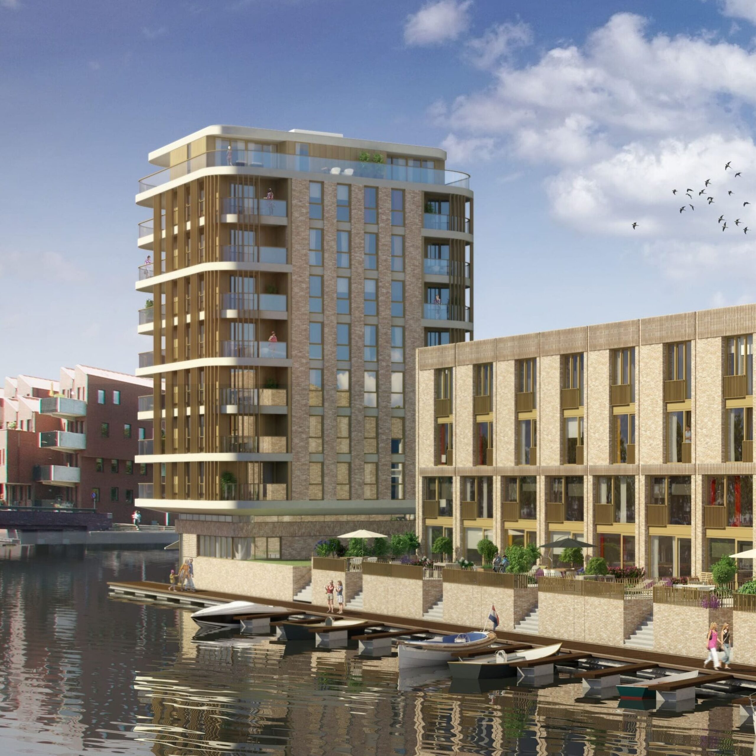 Een mooi voorbeeld van hoe verloren prijsvragen een nieuw leven kunnen krijgen, is de selectie waaraan wij in 2014 deelnamen, voor woningbouw met zware zorg aan het Spaarne in Haarlem. De opgave en locatie waren complex, maar wij maakten een mooi ontwerp, met zorgvuldige laagbouw met doordachte zorgfuncties en een prachtige, ranke toren met afgeronde hoeken. Op een donkere bakstenen sokkel van vier lagen stond een goudglanzende, elegante toren te zweven. De vakjury had grote waardering, maar het leek erop dat wij onvoldoende klik kregen met de zorgaanbieder die ook in de jury zat. Het speelveld was bovendien zwaar, met de beste Amsterdamse bureaus als concurrentie. We wonnen niet en de finale render hing nog een paar maanden boven ons bureau, voor ons rouwproces. Niet lang daarna werden we gevraagd voor een selectie in Heemstede, weer voor een locatie aan het water. Stedenbouwkundig uitgangspunt was hier een accent van acht verdiepingen, dat door de verhoudingen een plompe toren dreigde te worden. Het ontwerp aan het Spaarne gaf de perfecte inspiratie voor de noodzakelijke elegantie en rankheid die op deze plek in Heemstede als ‘gegoten’ stond. En dit keer wonnen we! De bouw is inmiddels in volle gang. Zo levert de betekenis en doorontwikkeling van een verloren prijsvraag uiteindelijk toch een fysiek resultaat op. Het verlies heeft ons verder geholpen en louterend gewerkt.