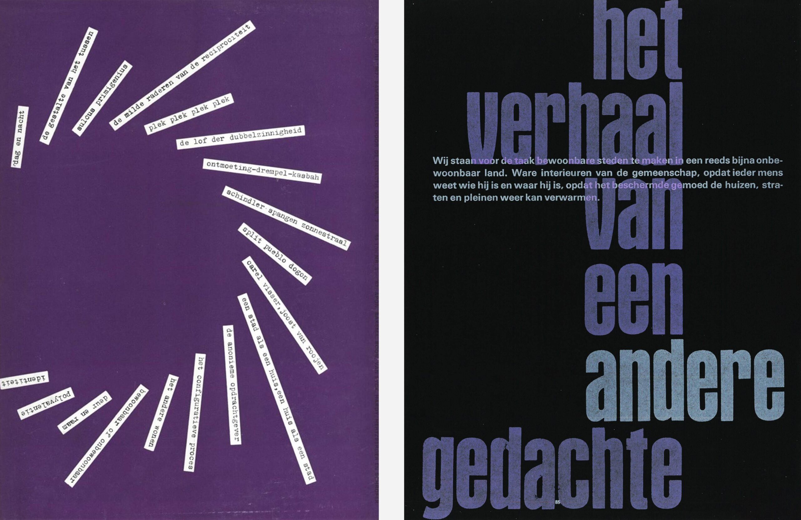 Misschien creëerde de brede stroom aan onderwerpen en invalshoeken die deze periode typeerde, verwarring en minder duidelijkheid over de richting in ons vak, maar het gaf ook veel ruimte om met open vizier naar het vak te kijken. Als we nu terugkijken zien we de waarde van publicaties in het tijdschrift Forum, in een periode waarin Het verhaal van een andere gedachte, zoals dat door Aldo van Eyck voor het eerst in 1959 onder woorden werd gebracht, het centrale thema vormde. Daarin zijn, als je het wat ruimer beschouwt, de onderwerpen terug te vinden die nu een belangrijke rol spelen in ons werk: moderniteit, historisch besef en de maatschappelijk-sociologische en contextuele verbindingen. Wonen en de stad zijn ons voornaamste werkterrein: de diversiteit van de stad waarin wonen, werken en verblijven centraal staan, maar vooral ook het maken van verbindingen tussen het wonen, de straat en het plein.