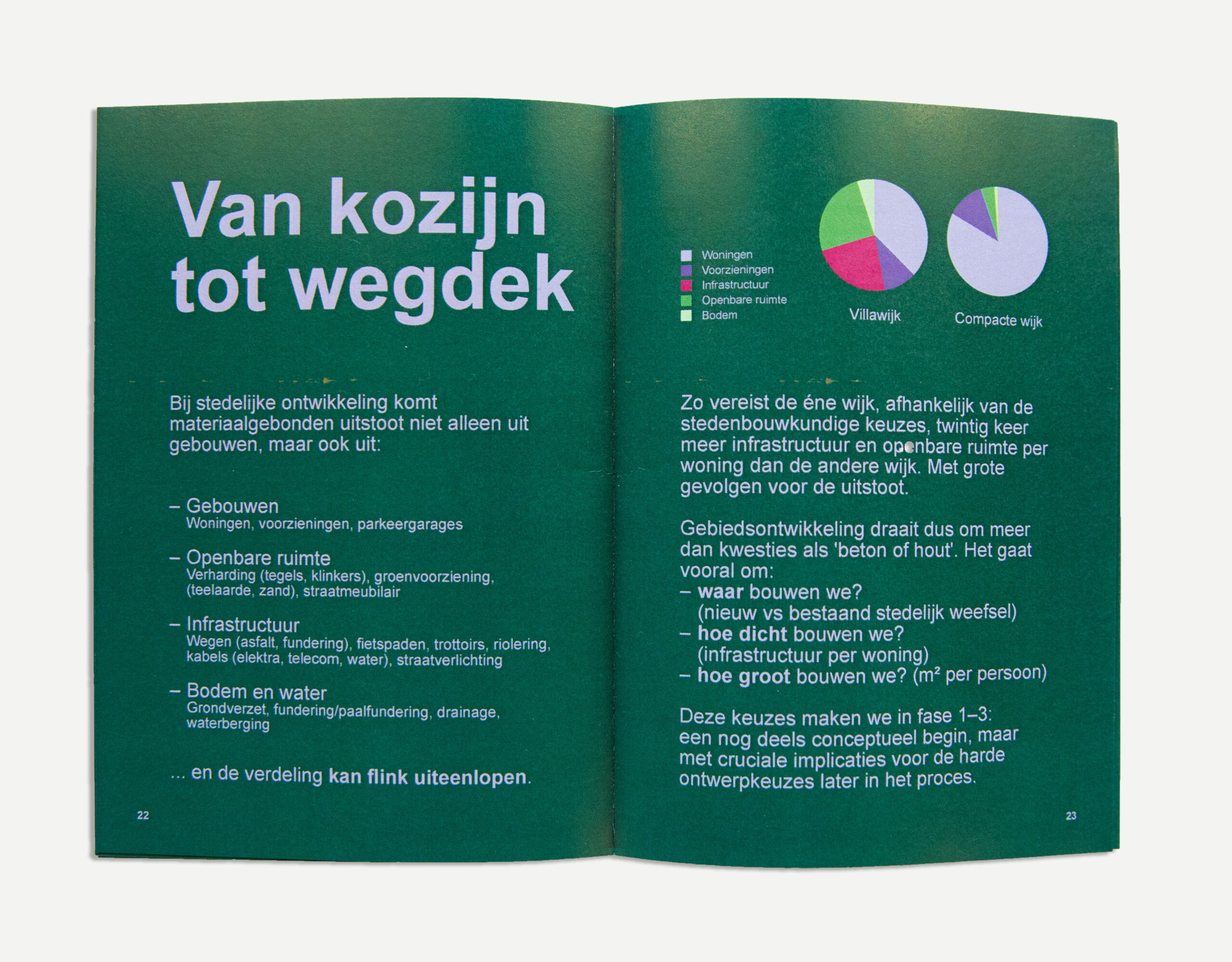 Zo wordt onder andere duidelijk dat uitstoot samenhangt met het vinden van balans tussen dichtheid en hoogte. Biobased materialen hebben veel impact op gebouwniveau, maar infrastructuur, openbare ruimte en bodem blijven vaak grotendeels fossiel. Verduurzaming op gebouwniveau lost het probleem op gebiedsniveau niet op.