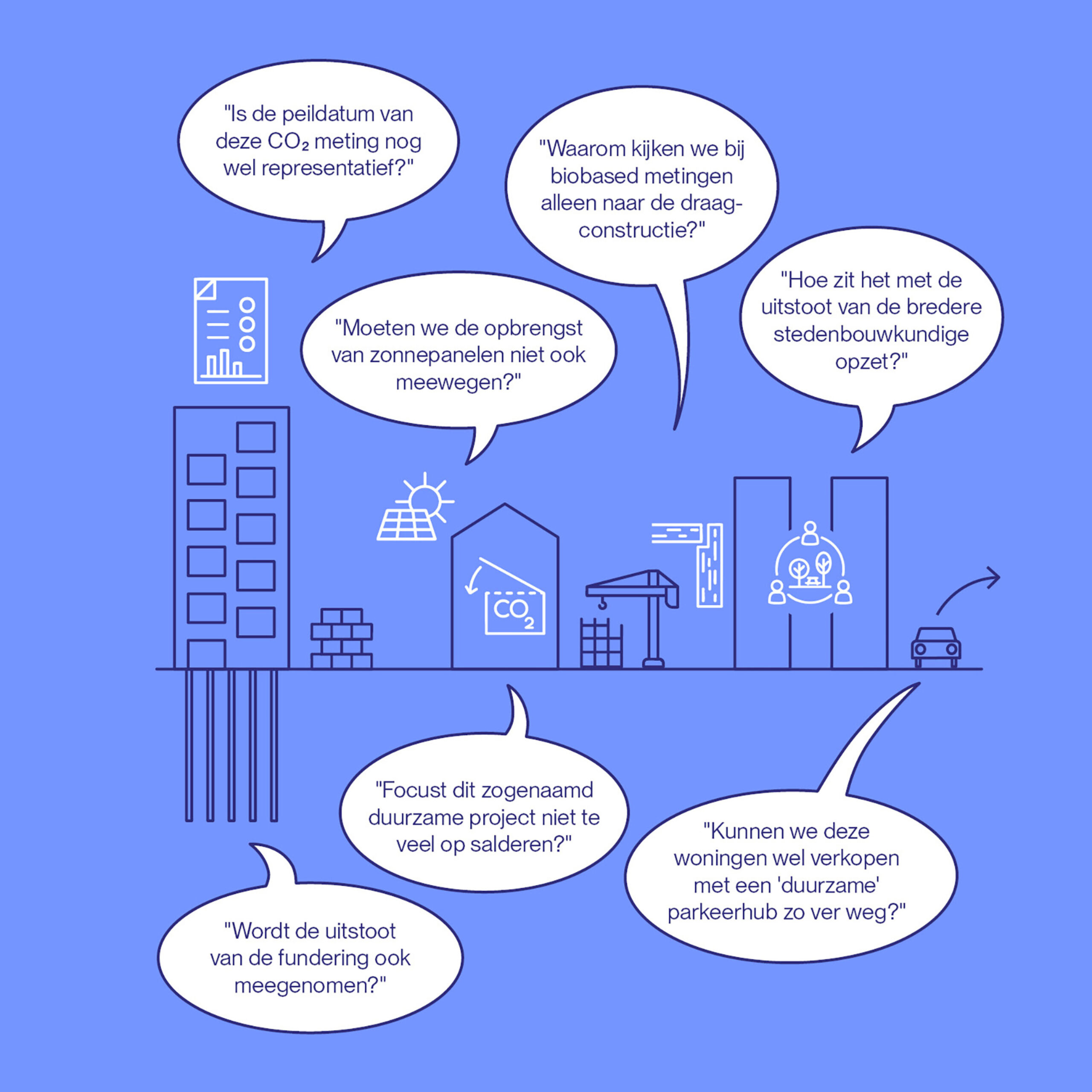 Meten roept dus vragen op. Dat is precies de bedoeling. Door te meten, kunnen we kritischer zijn op de metingen zelf. Hoe meer we weten over welke cijfers ertoe doen, hoe beter we daarop kunnen sturen in het hele ontwerpproces. Een perfect verslag met uniforme duurzaamheidscijfers voor elk project bestaat niet. Wat we dan tóch kunnen doen: kritisch zijn op de cijfers die we wél hebben, en onderbouwen waar we in de juiste richting bewegen.