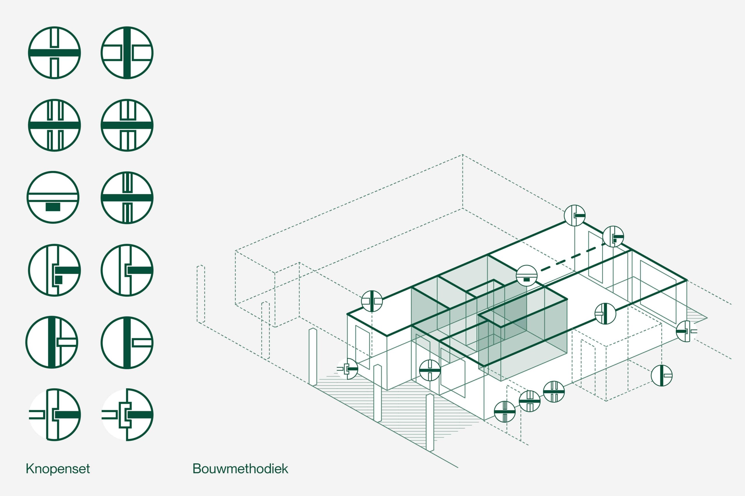 Wij benutten de kracht van hout in een volledig geïntegreerde set bouwknopen, waarin constructie, isolatie, gevels en meer samenkomen in technisch haalbare, realistisch uitvoerbare knopen.