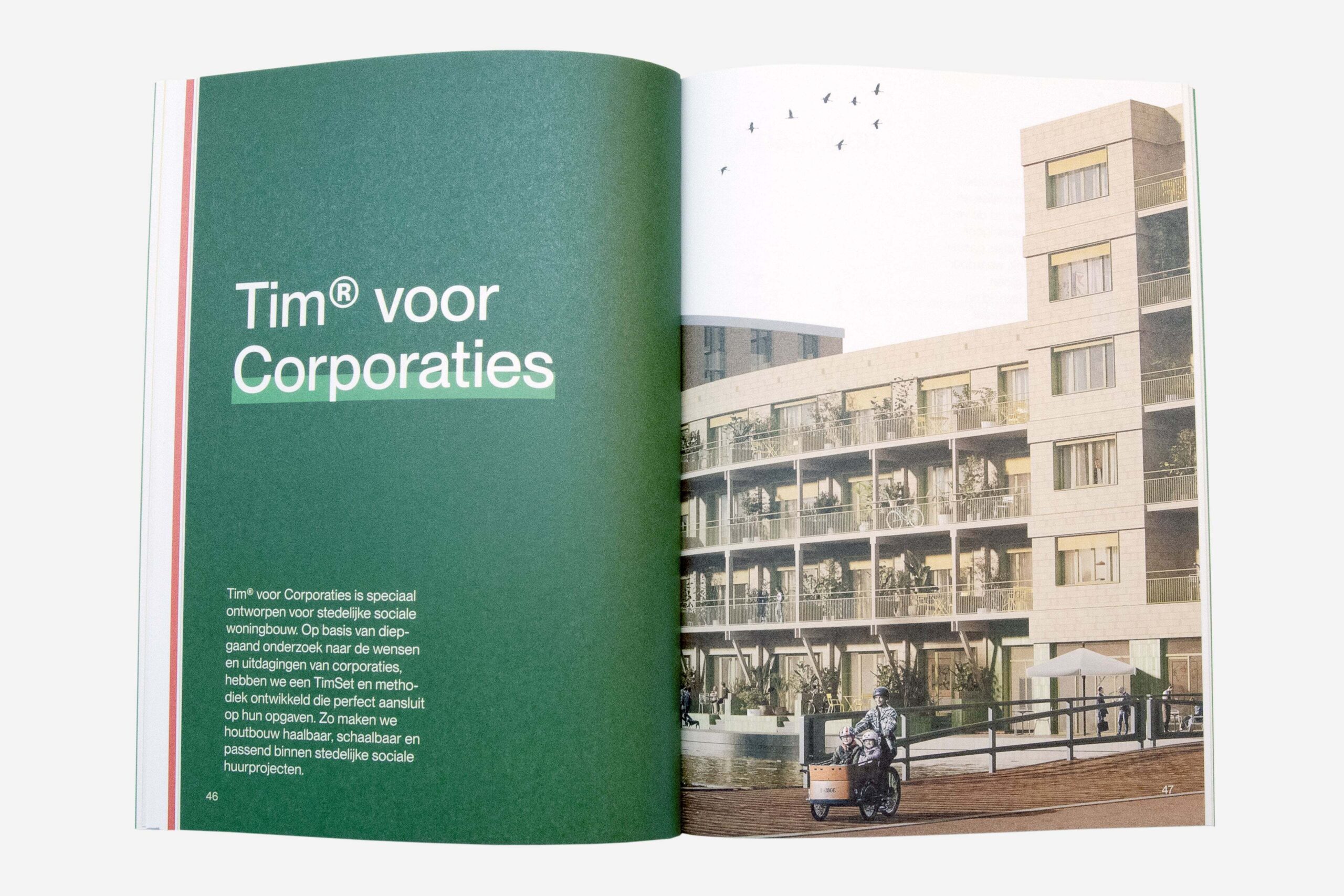 Met een groeiende collectie van principeknopen, de TimSets, kan iedere bouwopgave gerealiseerd worden. Zo wordt houtbouw steeds meer de norm. De methodiek is in de eerste fase specifiek toepasbaar gemaakt voor sociale woningbouw. De ‘TimSet voor Corporaties’ is afgestemd op PvE’s, budgetten en woningtypologieën van corporaties – zonder concessies aan kwaliteit of leefbaarheid. Daarmee geeft Tim® antwoord op de groeiende vraag naar biobased en betaalbare woningbouw.